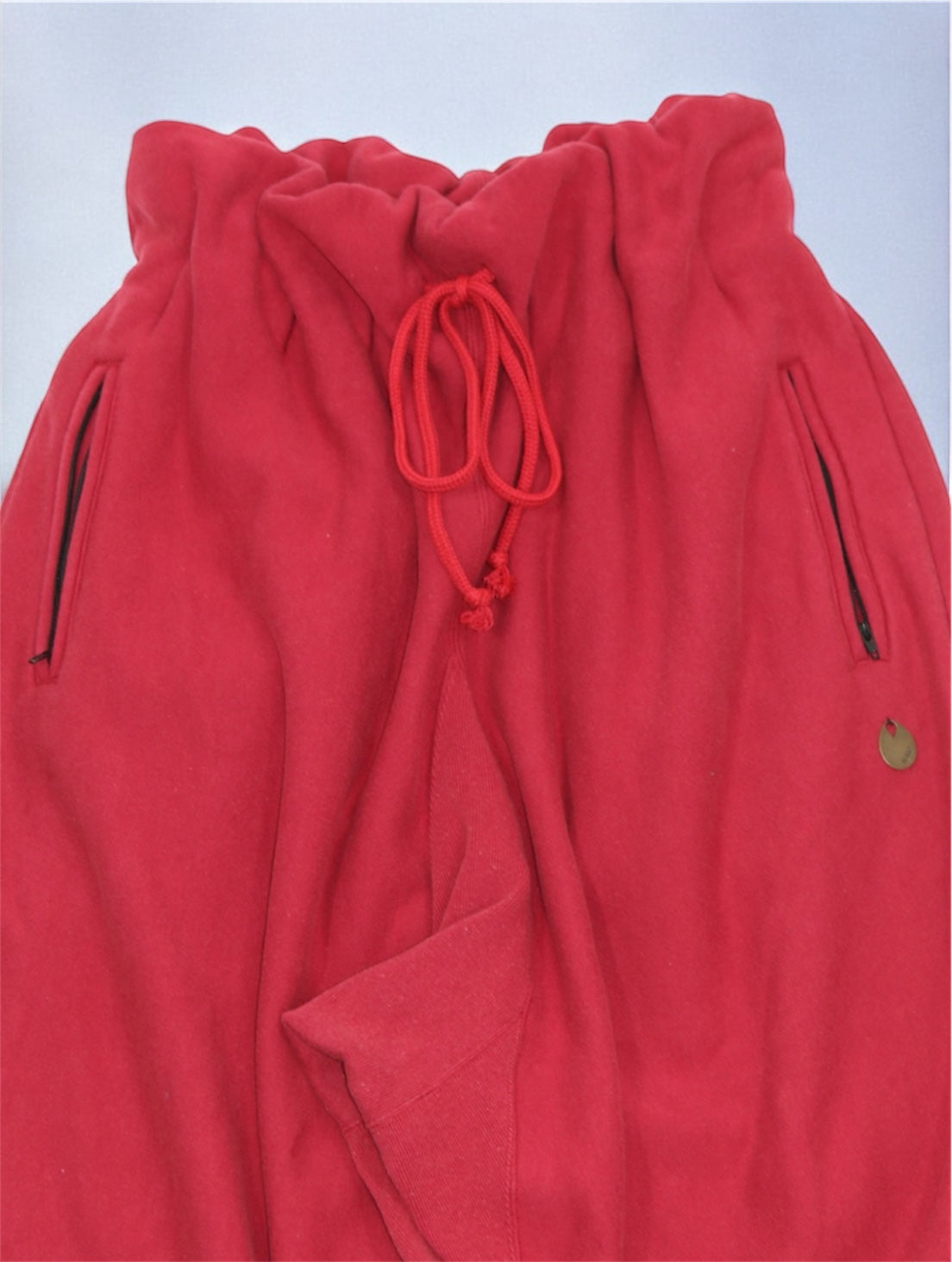 ウエスト周りをアコーディオン状に伸縮させ、更に余分に高さを持たせハイウエスト設定にしたスウェットパンツ。着用時、腰位置を変えることでアレンジが可能です。裾サイドにはベンチレーションが付いています。 アルカリブリーチによりやや掠れた雰囲気の生地感です。