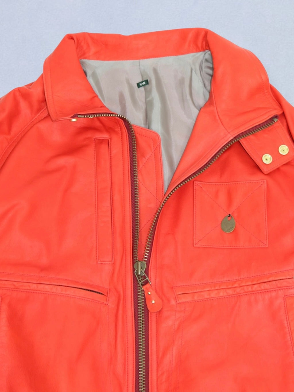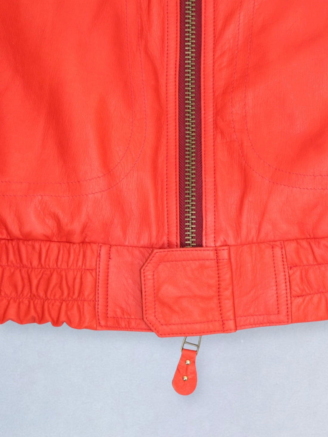 Based on a 1980s riders jacket from Yamaha that my father used to wear, this piece has been updated using lightweight cow leather. The original inspiration was also red, which is retained in this version.